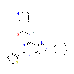 | SMILES | O=C(Nc1nc(-c2cccs2)nc2cn(-c3ccccc3)nc12)c1cccnc1 |