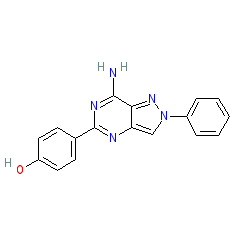 | SMILES | Nc1nc(-c2ccc(O)cc2)nc2cn(-c3ccccc3)nc12 |