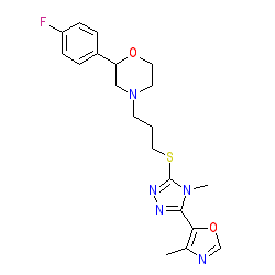 | SMILES | Cc1ncoc1-c1nnc(SCCCN2CCOC(c3ccc(F)cc3)C2)n1C |
