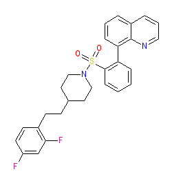 | SMILES | O=S(=O)(c1ccccc1-c1cccc2cccnc12)N1CCC(CCc2ccc(F)cc2F)CC1 |