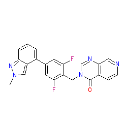 | SMILES | Cn1cc2c(-c3cc(F)c(Cn4cnc5cnccc5c4=O)c(F)c3)cccc2n1 |