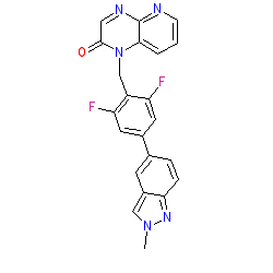 | SMILES | Cn1cc2cc(-c3cc(F)c(Cn4c(=O)cnc5ncccc54)c(F)c3)ccc2n1 |