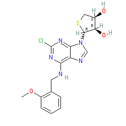| SMILES | COc1ccccc1CNc1nc(Cl)nc2c1ncn2[C@@H]1SC[C@@H](O)[C@H]1O |