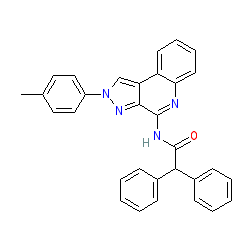 | SMILES | Cc1ccc(-n2cc3c(n2)c(NC(=O)C(c2ccccc2)c2ccccc2)nc2ccccc23)cc1 |