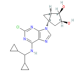 | SMILES | O[C@H]1C[C@@]2(n3cnc4c(NC(C5CC5)C5CC5)nc(Cl)nc43)C[C@H]2[C@H]1O |