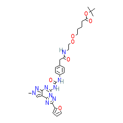 | SMILES | Cn1cc2c(nc(NC(=O)Nc3ccc(CC(=O)NCCOOCCCCC(=O)OC(C)(C)C)cc3)n3nc(-c4ccco4)nc23)n1 |