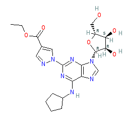 | SMILES | CCOC(=O)c1cnn(-c2nc(NC3CCCC3)c3ncn([C@@H]4O[C@H](CO)[C@@H](O)[C@H]4O)c3n2)c1 |