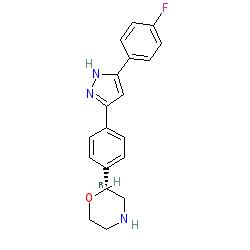 | SMILES | Fc1ccc(-c2cc(-c3ccc([C@@H]4CNCCO4)cc3)n[nH]2)cc1 |