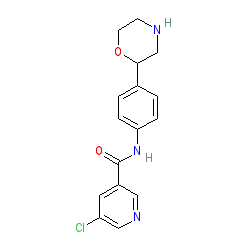 | SMILES | O=C(Nc1ccc(C2CNCCO2)cc1)c1cncc(Cl)c1 |