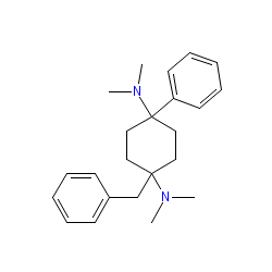 SMILES | CN(C)C1(Cc2ccccc2)CCC(c2ccccc2)(N(C)C)CC1 |