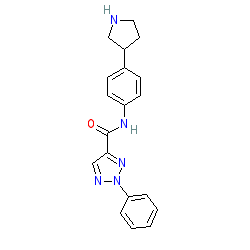 | SMILES | O=C(Nc1ccc(C2CCNC2)cc1)c1cnn(-c2ccccc2)n1 |