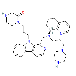 SMILES | O=C1CNCCN1CCCn1c2ccccc2c2ccnc(CN(CCCN3CCNCC3)[C@H]3CCCc4cccnc43)c21 |