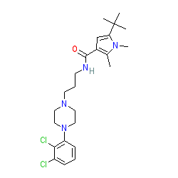 | SMILES | Cc1c(C(=O)NCCCN2CCN(c3cccc(Cl)c3Cl)CC2)cc(C(C)(C)C)n1C |
