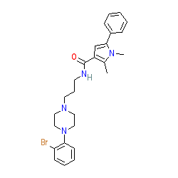 | SMILES | Cc1c(C(=O)NCCCN2CCN(c3ccccc3Br)CC2)cc(-c2ccccc2)n1C |