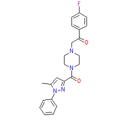 | SMILES | Cc1cc(C(=O)N2CCN(CC(=O)c3ccc(F)cc3)CC2)nn1-c1ccccc1 |