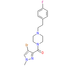 | SMILES | Cn1cc(Br)c(C(=O)N2CCN(CCc3ccc(F)cc3)CC2)n1 |