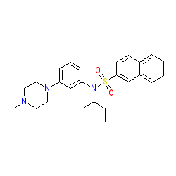 | SMILES | CCC(CC)N(c1cccc(N2CCN(C)CC2)c1)S(=O)(=O)c1ccc2ccccc2c1 |