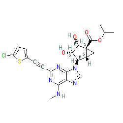 | SMILES | CNc1nc(C#Cc2ccc(Cl)s2)nc2c1ncn2[C@H]1[C@H](O)[C@H](O)[C@]2(C(=O)OC(C)C)C[C@H]12 |