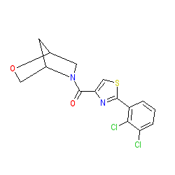 | SMILES | O=C(c1csc(-c2cccc(Cl)c2Cl)n1)N1CC2CC1CO2 |