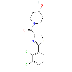 | SMILES | O=C(c1csc(-c2cccc(Cl)c2Cl)n1)N1CCC(O)CC1 |
