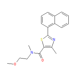 | SMILES | COCCN(C)C(=O)c1sc(-c2cccc3ccccc23)nc1C |