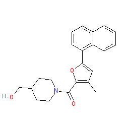 | SMILES | Cc1cc(-c2cccc3ccccc23)oc1C(=O)N1CCC(CO)CC1 |