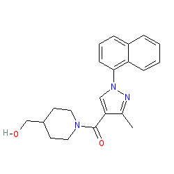 | SMILES | Cc1nn(-c2cccc3ccccc23)cc1C(=O)N1CCC(CO)CC1 |