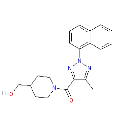 | SMILES | Cc1nn(-c2cccc3ccccc23)nc1C(=O)N1CCC(CO)CC1 |