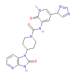 SMILES | Cn1cc(C2C=NC=N2)cc(NC(=O)N2CCC(n3c(=O)[nH]c4ncccc43)CC2)c1=O |