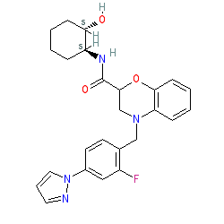 | SMILES | O=C(N[C@H]1CCCC[C@@H]1O)C1CN(Cc2ccc(-n3cccn3)cc2F)c2ccccc2O1 |