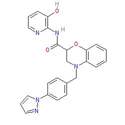 | SMILES | O=C(Nc1ncccc1O)C1CN(Cc2ccc(-n3cccn3)cc2)c2ccccc2O1 |
