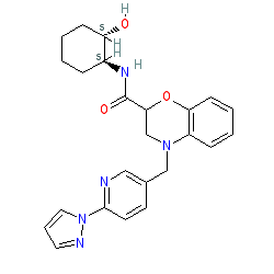 | SMILES | O=C(N[C@H]1CCCC[C@@H]1O)C1CN(Cc2ccc(-n3cccn3)nc2)c2ccccc2O1 |