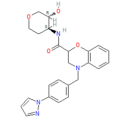 | SMILES | O=C(N[C@H]1CCOC[C@@H]1O)C1CN(Cc2ccc(-n3cccn3)cc2)c2ccccc2O1 |