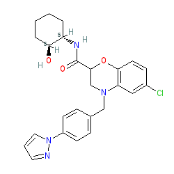 | SMILES | O=C(N[C@H]1CCCC[C@@H]1O)C1CN(Cc2ccc(-n3cccn3)cc2)c2cc(Cl)ccc2O1 |