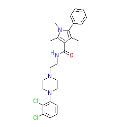 | SMILES | Cc1c(C(=O)NCCN2CCN(c3cccc(Cl)c3Cl)CC2)c(C)n(C)c1-c1ccccc1 |