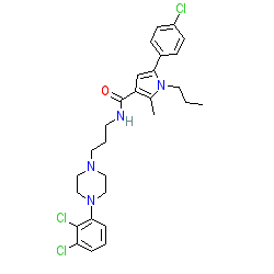 | SMILES | CCCn1c(-c2ccc(Cl)cc2)cc(C(=O)NCCCN2CCN(c3cccc(Cl)c3Cl)CC2)c1C |
