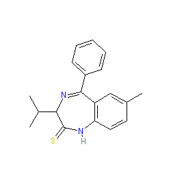 | SMILES | Cc1ccc2c(c1)C(c1ccccc1)=NC(C(C)C)C(=S)N2 |