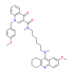 | SMILES | COc1ccc(Cn2cc(C(=O)NCCCCCCNc3c4c(nc5ccc(OC)cc35)CCCC4)c(=O)c3ccccc32)cc1 |