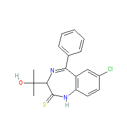 | SMILES | CC(C)(O)C1N=C(c2ccccc2)c2cc(Cl)ccc2NC1=S |