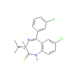 | SMILES | CC(C)[C@@H]1N=C(c2cccc(Cl)c2)c2cc(Cl)ccc2NC1=S |