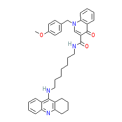 | SMILES | COc1ccc(Cn2cc(C(=O)NCCCCCCCNc3c4c(nc5ccccc35)CCCC4)c(=O)c3ccccc32)cc1 |