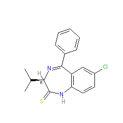 | SMILES | CC(C)[C@H]1N=C(c2ccccc2)c2cc(Cl)ccc2NC1=S |