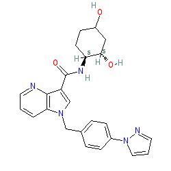 | SMILES | O=C(N[C@H]1CCC(O)C[C@@H]1O)c1cn(Cc2ccc(-n3cccn3)cc2)c2cccnc12 |