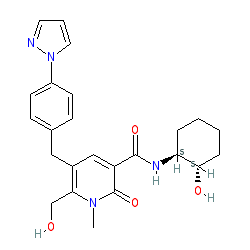 | SMILES | Cn1c(CO)c(Cc2ccc(-n3cccn3)cc2)cc(C(=O)N[C@H]2CCCC[C@@H]2O)c1=O |