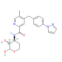 | SMILES | Cc1cnc(C(=O)N[C@H]2CCOC(O)[C@@H]2O)cc1Cc1ccc(-n2cccn2)cc1 |