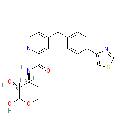 | SMILES | Cc1cnc(C(=O)N[C@H]2CCOC(O)[C@@H]2O)cc1Cc1ccc(-c2cscn2)cc1 |