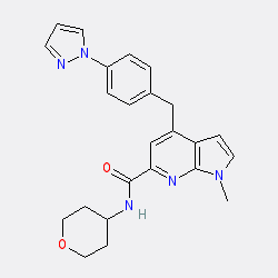 | SMILES | Cn1ccc2c(Cc3ccc(-n4cccn4)cc3)cc(C(=O)NC3CCOCC3)nc21 |