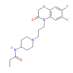 | SMILES | CCC(=O)NC1CCN(CCCN2C(=O)COc3cc(F)c(F)cc32)CC1 |