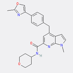| SMILES | Cc1nc(-c2ccc(Cc3cc(C(=O)NC4CCOCC4)nc4c3ccn4C)cc2)co1 |