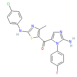 | SMILES | Cc1nc(Nc2ccc(Cl)cc2)sc1C(=O)c1cnc(N)n1-c1ccc(F)cc1 |